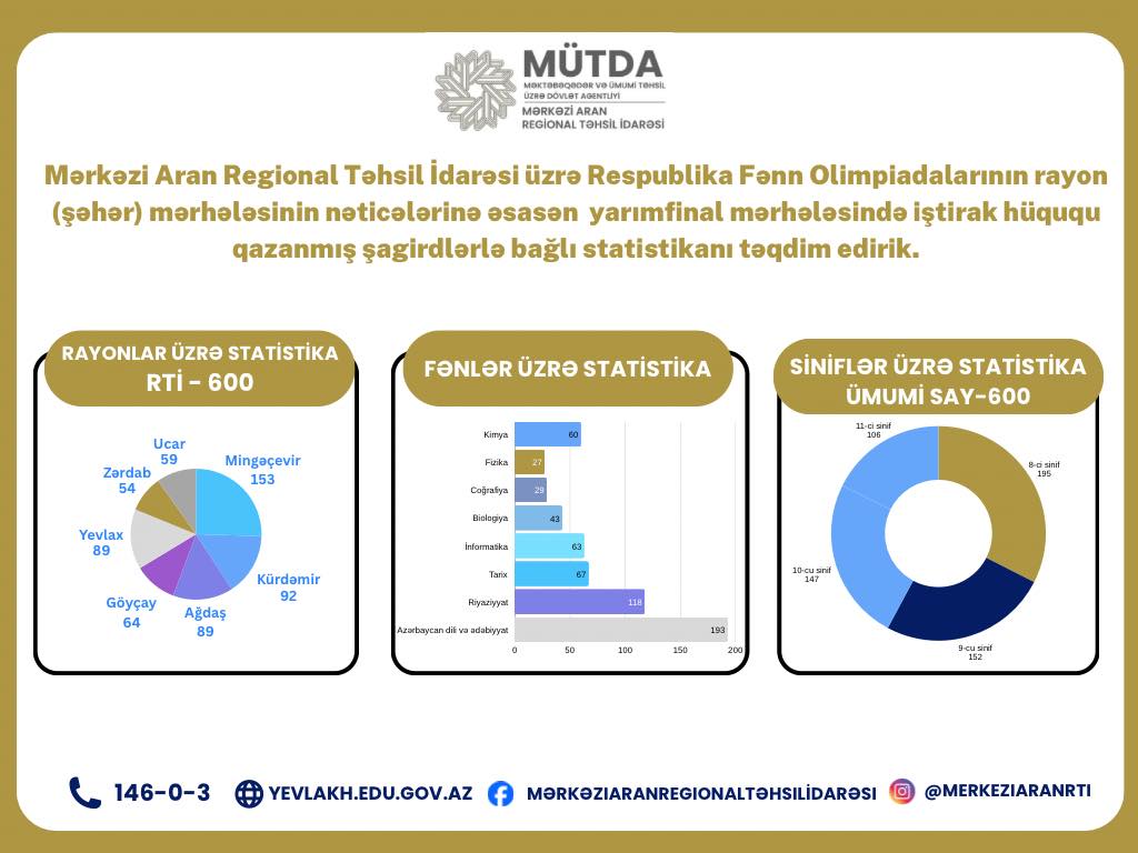 Nəticələrə əsasən, Mərkəzi Aran Regional Təhsil İdarəsinin tabeliyində olan ümumtəhsil müəssisələrindən 600 şagird yarımfinal mərhələsində iştirak etmək hüququ qazanıb.